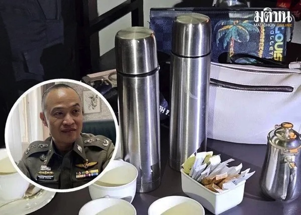Trung tướng Trirong Phiwphan nói rằng các b́nh giữ nhiệt đựng chất lỏng giống cà phê đen có chứa chất độc là do nhóm khách tự mang đến chứ không phải của khách sạn.