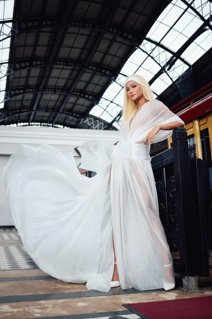 H'Hen Niê thướt tha với đầm bay, cô cũng chọn thêm chiếc băng đô bản to thay đổi theo từng bộ trang phục