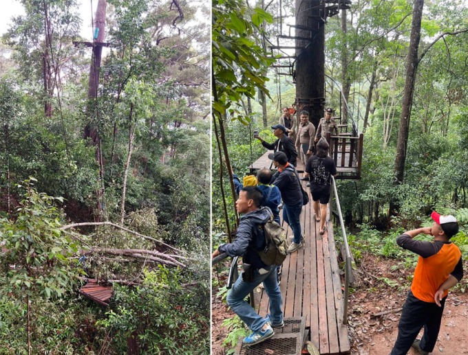 Hai hành khách gặp nạn khi một cây lớn giữa tuyến zipline bị đổ khiến họ rơi xuống đất, người vợ tử vong, người chồng bị thương nặng.
