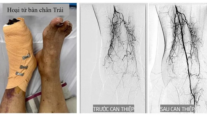 Trường hợp này, may mắn ekip can thiệp chỉ nong mạch máu tái thông mà không phải cần đặt stent. Sau đó, các bác sĩ chuyên khoa chấn thương chỉnh hình đã phẫu thuật cắt lọc phần chi đã hoại tử cho bà C.. Chính nhờ sự kết hợp giữa các khoa nhanh chóng, ekip đã thành công giữ được khớp gối và một phần cẳng chân trái cho bệnh nhân.