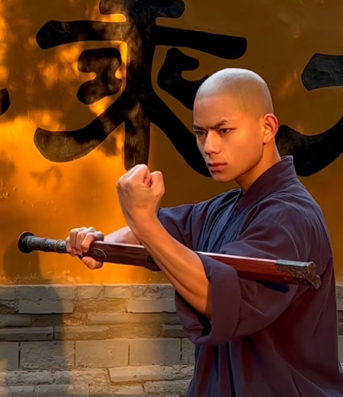 Nhà sư Thu Phong, 21 tuổi, tu luyện võ thuật Thiếu Lâm Tự 9 năm. Ảnh: 163