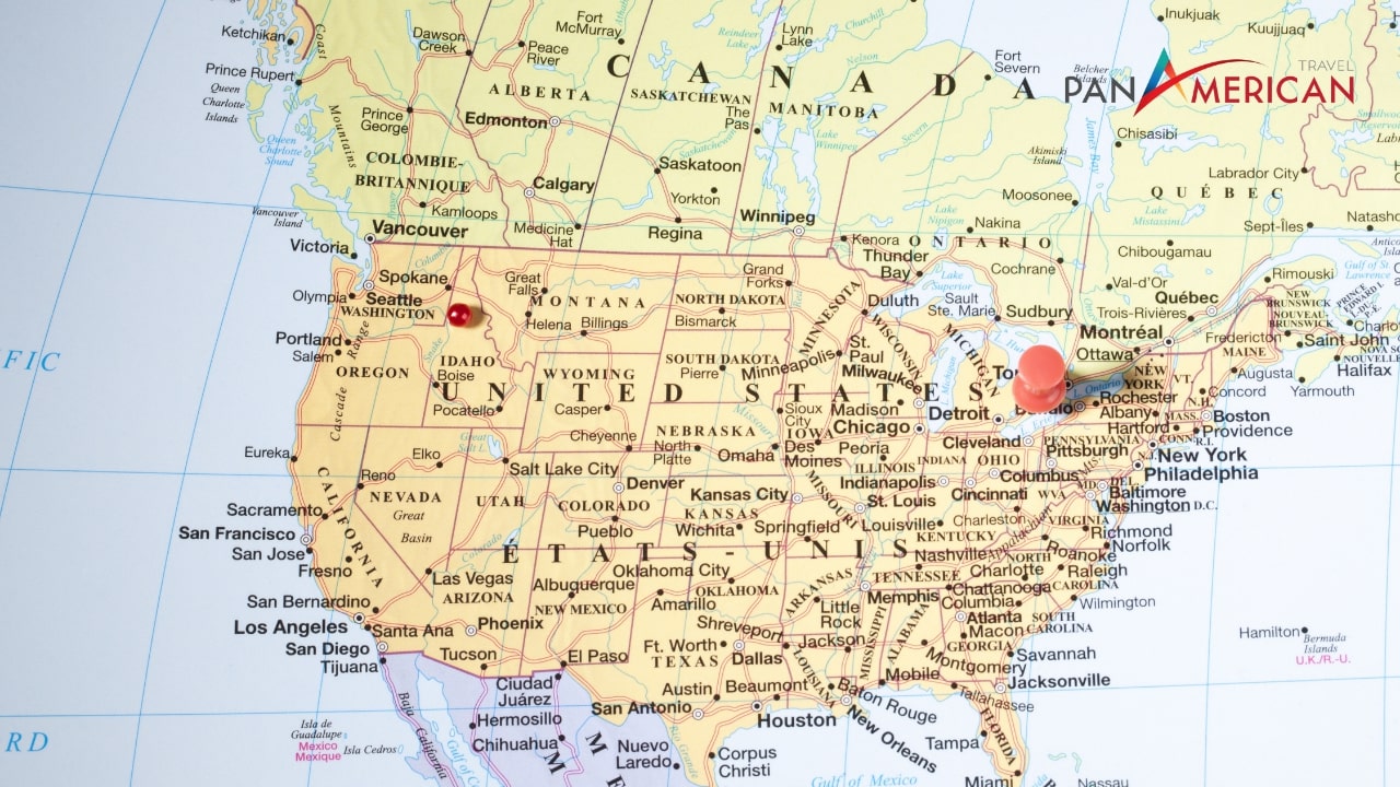 Phải mất nhiều tuần mới có thể tham qua hết các thành phố lớn của Mỹ. Để đi xe ô tô từ thành phố Seattle, đi qua New York, Miami, Grand Canyon và Hollywood, khách du lịch phải mất một tuần. Khoảng cách để đi từ bờ biển Thái Bình Dương sang đến bờ biển Đại Tây Dương – hai đại dương ôm lấy nước Mỹ – là 4.800km.