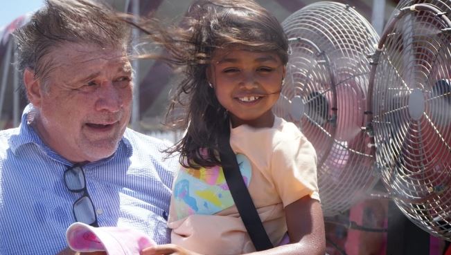 Người dân đứng trước quạt để tránh nóng tại Orange, California, Mỹ. Ảnh: THX/TTXVN.