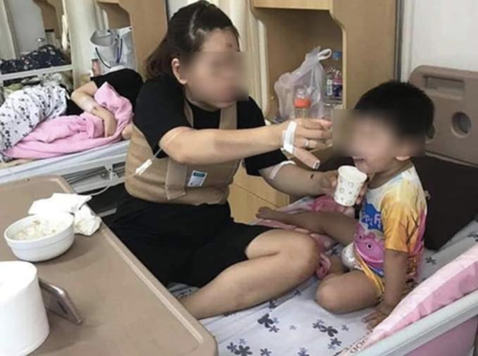 Một phụ nữ Việt bị chồng Hàn Quốc bạo hành, vừa điều trị vừa chăm sóc con trai tại bệnh viện thành phố Mokpo, tỉnh Jeollan Nam, tháng 7/2019. Ảnh: Korea Times