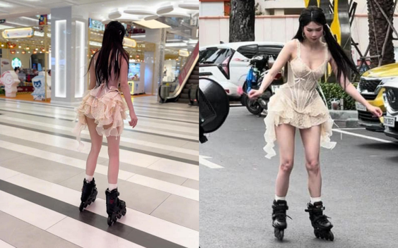 Hình ảnh Ngọc Trinh trượt patin trong trung tâm thương mại gây tranh cãi.