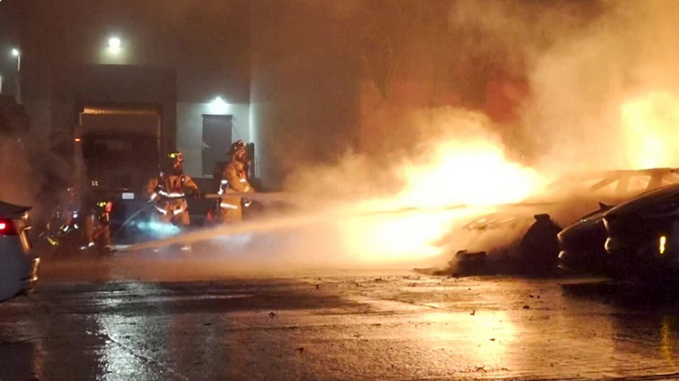 Một thành viên thuộc Đơn Vị Pḥng Chống Cháy Nổ Đô Thị nói với ABC10 rằng pin lithium-ion trong bốn chiếc xe tiếp tục bốc hỏa vào khoảng 6 giờ 30 sáng.