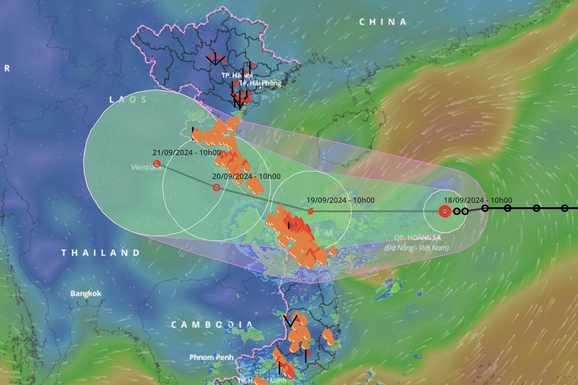 Dự báo chiều tối ngày 18/9 đến 19/9, từ Hà Tĩnh đến Quảng Ngãi có mưa to đến rất to từ 100 - 300mm, có nơi trên 500mm; Thanh Hóa, Nghệ An từ 70-150mm, có nơi trên 250mm; Tây Nguyên từ 40-80mm, có nơi trên 150mm.