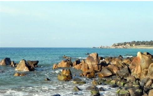 Sau khi thả bộ chinh phục những đụn cát cao thấp phủ đầy hoa muống biển, bạn sẽ ngạc nhiên với những tảng đá ẩn hiện trong nước như những chú cá dập dềnh trên biển.