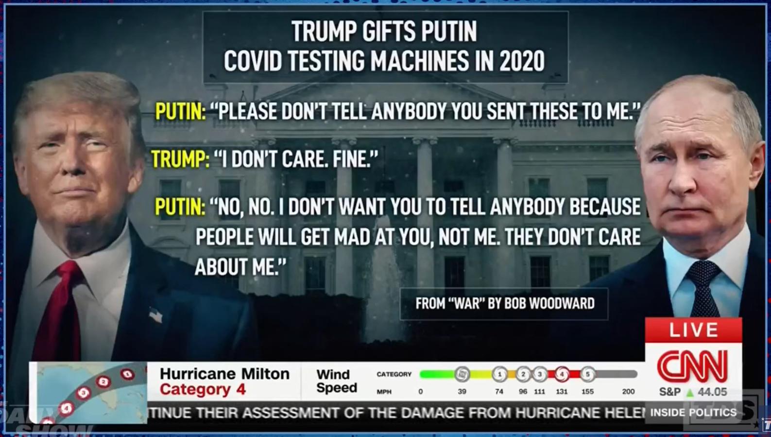 Theo Woodward, Trump đã “bí mật gửi cho Putin một số máy xét nghiệm Covid của Abbott Point of Care để sử dụng cá nhân”.