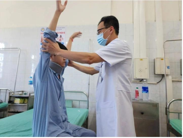 Bệnh nhân được bác sĩ kiểm tra vận động trước khi xuất viện