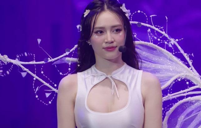 Trên sân khấu, các chị đẹp xuất hiện trong trang phục cắt xẻ táo bạo. Điểm nhấn của tiết mục là khoảnh khắc Ninh Dương Lan Ngọc và các chị đẹp mang cánh biểu diễn.