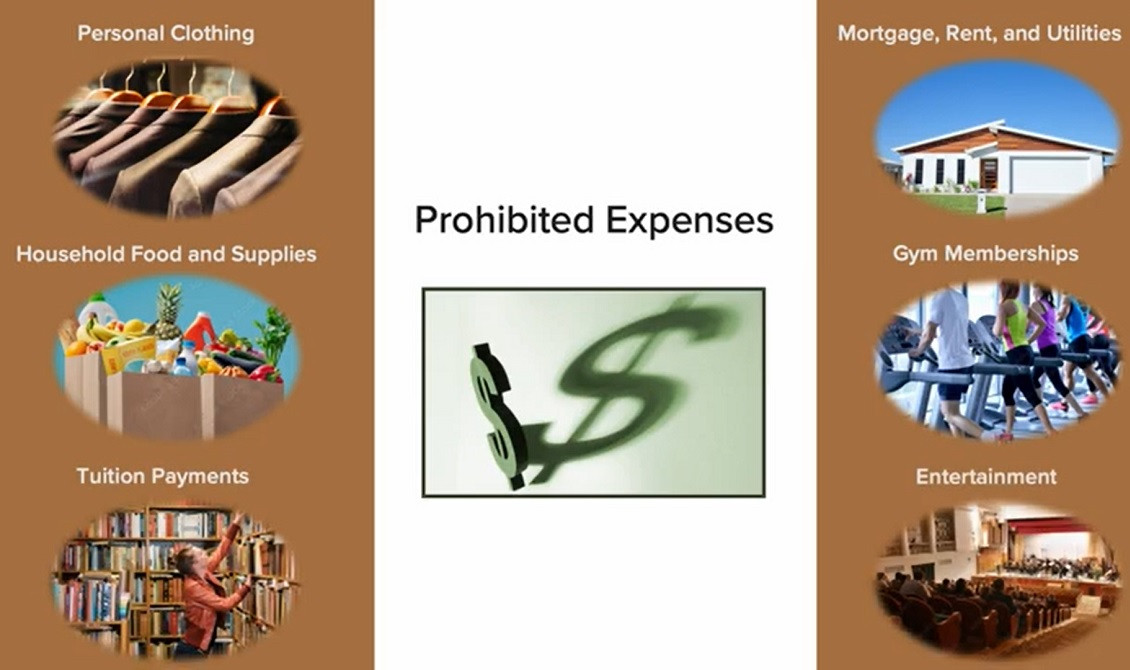 Các khoản chi phí được coi là sử dụng cá nhân bao gồm: các mặt hàng gia dụng; các khoản tiền thế chấp hoặc tiền thuê nhà ở cá nhân; các khoản thanh toán lương dành cho người thân trong gia đình ứng viên, trừ trường hợp các thành viên đó cung cấp những dịch vụ thiết thực dành cho chiến dịch tranh cử, đồng thời khoản thanh toán phản ánh giá trị của dịch vụ đó trên thị trường tự do.