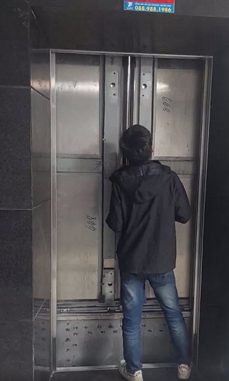 Bảo vệ chung cư phá cửa thang máy cho người dân thoát ra ngoài