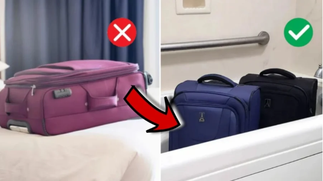 Khi nhận phòng khách sạn, hầu hết mọi người thường để vali ở sàn nhà hoặc trên bàn. Tuy nhiên, một mẹo quan trọng mà ít ai biết đến chính là đặt ngay vali vào bồn tắm sau khi nhận phòng.