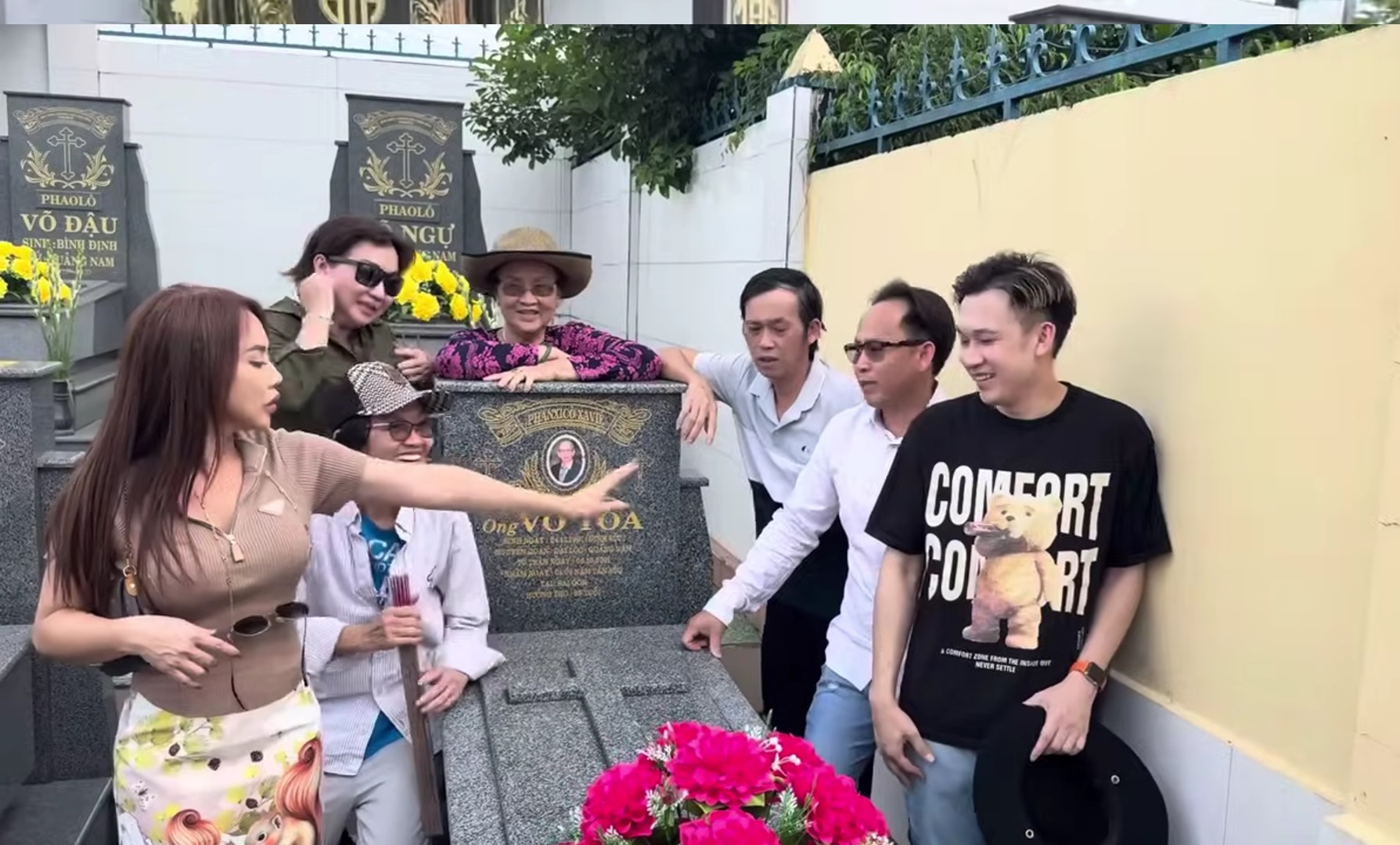 6 anh chị em nhà Hoài Linh dù đã lớn tuổi nhưng cư xử rất thân thiết, tình cảm với nhau. Cả 6 anh chị em từ Mỹ về đều tới thăm mộ, vui vẻ chụp hình liên tục bên mộ ông bà, tổ tiên.