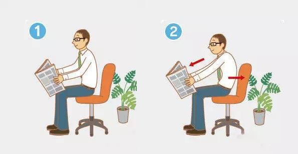 Không ngồi quá sâu trên ghế, chỉ ngồi khoảng 1/3 bề mặt ghế, bắt đầu ở tư thế ngồi lưng thẳng. Giữ nguyên tư thế này, tập trung sức lực vào bụng và siết chặt cơ bụng, từ từ đẩy cong lưng về phía sau. Giữ tối thiểu 15 giây sau đó trở về vị trí ban đầu.