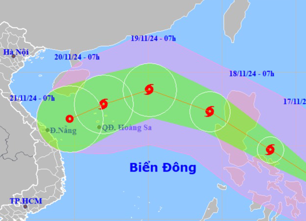 Dự báo đến 7 giờ ngày 18-11, bão ở trên vùng biển phía Đông khu vực Bắc Biển Đông, đổi hướng Tây Tây Bắc và di chuyển chậm lại với tốc độ 15-20 km. Sức gió mạnh nhất vùng gần tâm bão mạnh cấp 12, giật cấp 15.
