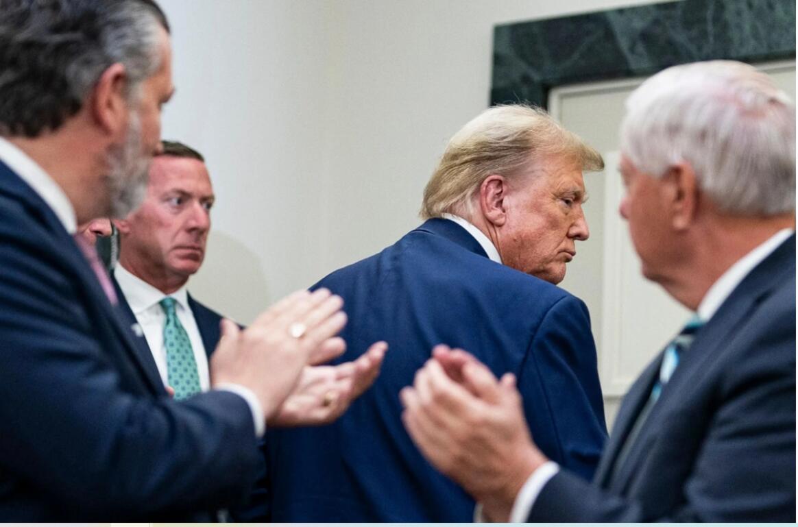 Ông Trump rời đi sau cuộc họp với các Thượng nghị sĩ đảng Cộng hòa tại văn phòng Ủy ban Thượng viện Cộng hòa ở Washington DC, ngày 13/6. Ảnh: Bloomberg
