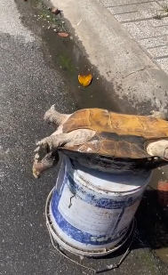 Theo đó, chủ nhân đoạn video đã ghi lại cảnh khi đang đi trên đường bất ngờ gặp một con rùa khá lớn bị lật ngửa nằm trên một thùng sơn phơi giữa trưa nắng để bán. Có thể thấy con rùa đã vô cùng khó chịu ở tư thế này và không ngừng đạp chân để cố gắng thoát ra nhưng hoàn toàn bất lực.