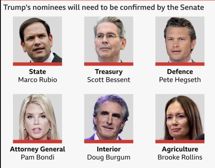 Nhân sự nội các mới của ông Trump. Ảnh: BBC