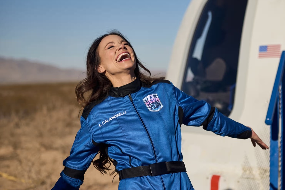 “Chúng tôi bước vào trạng thái không trọng lực. Tôi lập tức lộn người lại, nhìn xuống Trái Đất. Có rất nhiều bóng đen và không gian thì thật rộng lớn”, Calandrelli kể lại trong video đăng lên mạng xã hội. Video ghi lại phản ứng kinh ngạc của cô khi thấy Trái Đất từ không gian.