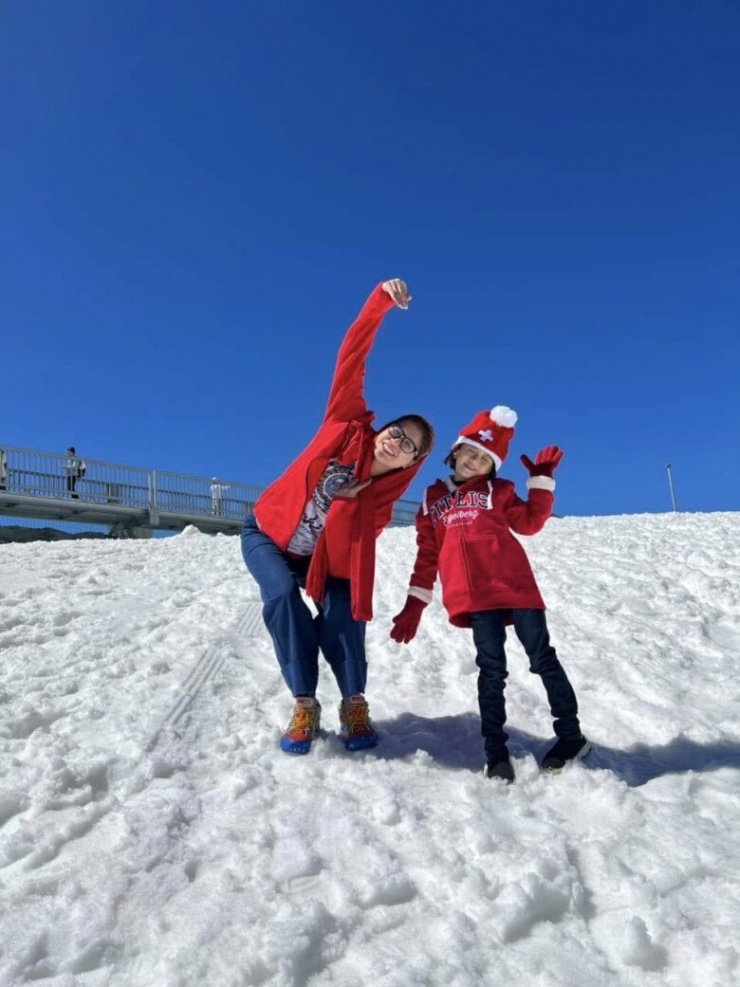 Theo đó cựu người mẫu cho con gái Kiến Lửa đi ngắm băng tuyết tại núi Tislis ở Thụy Sỹ. Con gái Trang Trần vô cùng thích thú cùng mẹ chụp ảnh lưu lại những kỉ niệm hạnh phúc, vui vẻ trong chuyến vui chơi của gia đình.