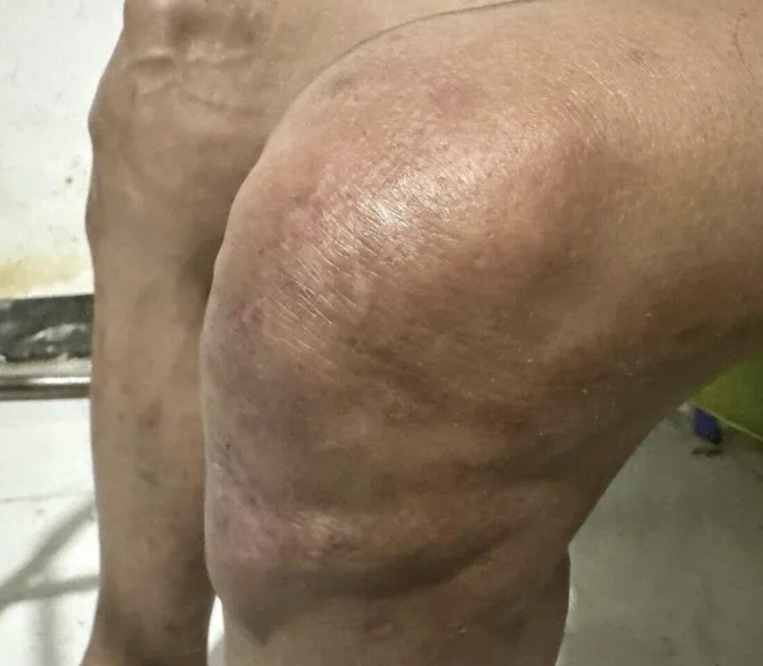 2 đầu gối của Thương Tín sưng tấy và biến dạng.