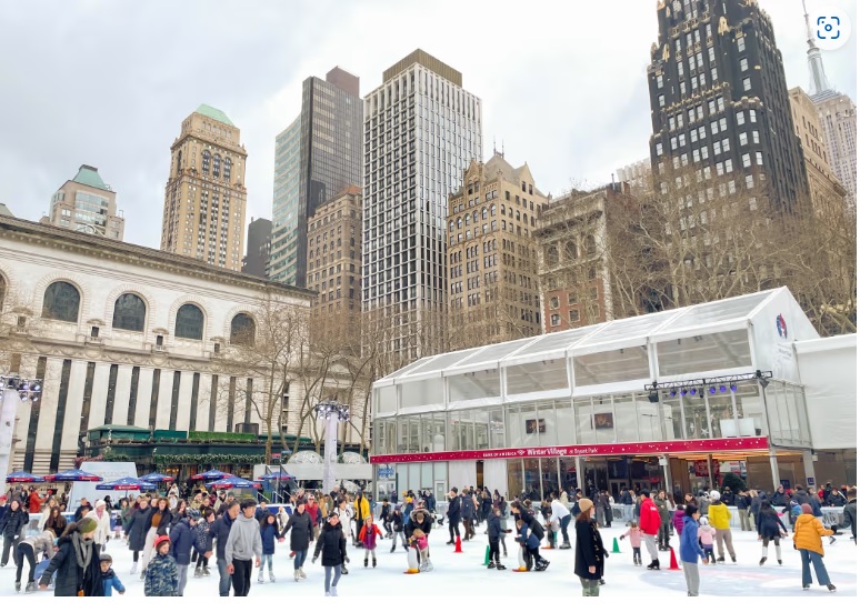 Sân trượt băng trong công viên Bryant, Manhattan, New York được nhiều người tới trải nghiệm trong những tháng mùa đông lạnh giá. Ảnh: Getty Images.