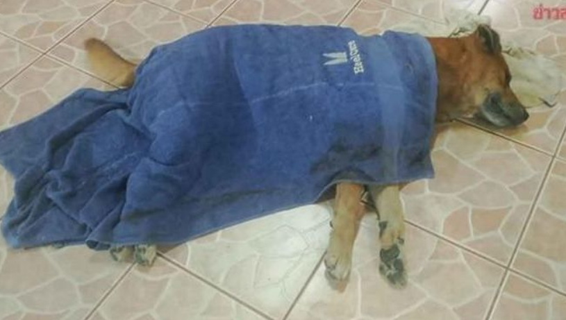 Judo chỉ nằm khóc trong tang lễ của chủ, không ai dỗ nó được. Ảnh: Khaosod.
