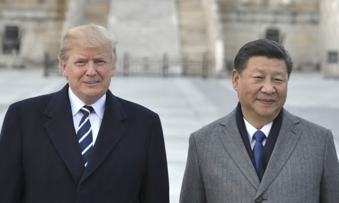 Tổng thống Mỹ Donald Trump (trái) và Chủ tịch Trung Quốc Tập Cận Bình tại Bắc Kinh tháng 11/2017. Ảnh: AFP