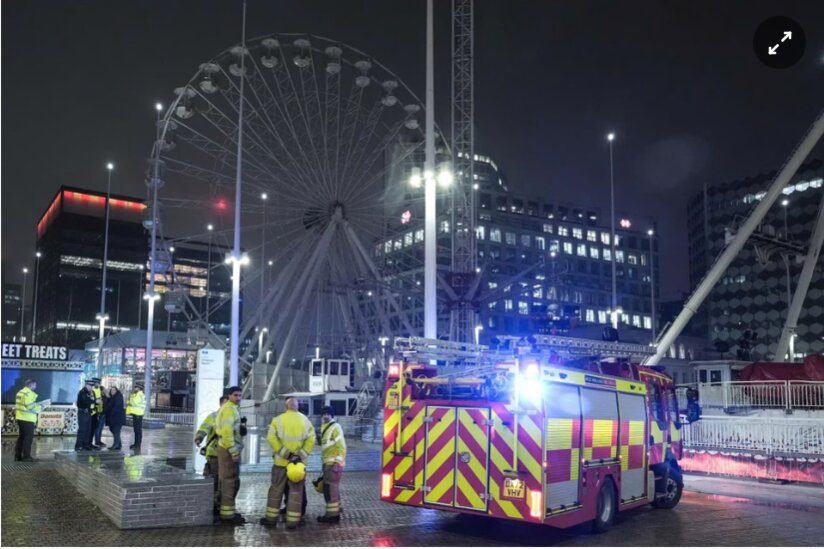 Theo sở cứu hỏa, các sĩ quan và nhân viên y tế đã có mặt tại hiện trường tại Quảng trường Centenary, Birmingham, lúc 19h30 ngày 12/12, sau khi đu quay trò chơi bất ngờ rơi xuống đất trong lúc đang hoạt động.