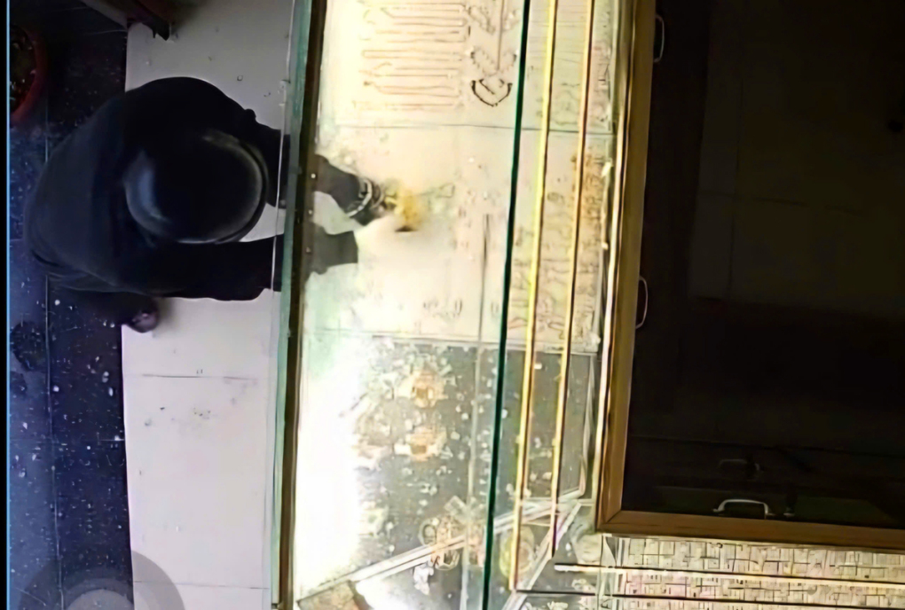 Camera ghi cảnh Nguyễn Quốc Thành Nhân dùng búa đập tủ kính cướp vàng. Video: Camera an ninh