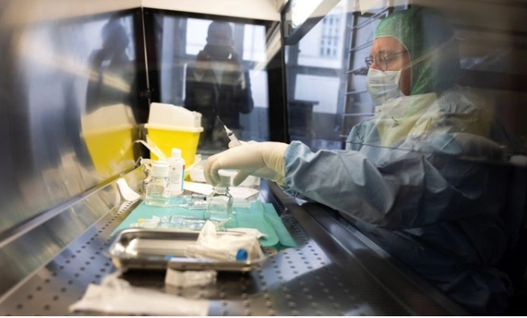 Bác sĩ chuẩn bị thực khuẩn thể tại bệnh viện ở Lyon (Pháp). Thực khuẩn thể - virus ký sinh trên vi khuẩn - có thể là cách để chống vi khuẩn kháng kháng sinh. ẢNH: AFP
