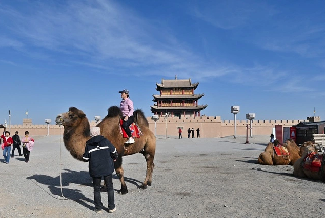 Một du khách cưỡi lạc đà tại tỉnh Cam Túc (Trung Quốc) vào ngày 28.10