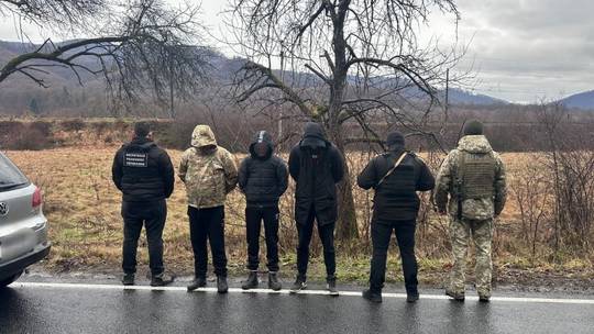 Những kẻ buôn người và trốn nghĩa vụ bị bắt tại biên giới với Slovakia ngày 26/12/ 2024. Ảnh Cục Biên phòng Ukraine