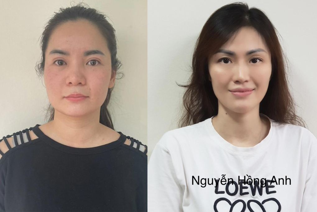 Đào Thị Oanh (trái) và Nguyễn Hồng Anh khi bị bắt hồi tháng 7/2023.. Ảnh: Bộ Công an