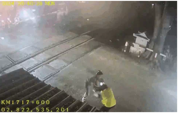 Sự việc được camera an ninh ghi lại cho thấy, vào khoảng 20 giờ 40 phút ngày 30/12, tại đường ngang Km 1717+600 (chùa Ưu Đàm, phường Hiệp Bình Chánh, quận Thủ Đức, TPHCM) khi nhân viên gác tàu đã đóng chắn chuẩn bị đón đoàn tàu số hiệu 4501 đi qua.