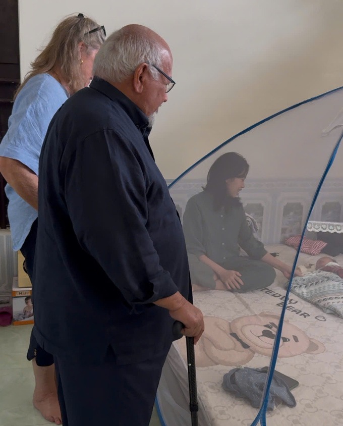 Nam du khách Anh gốc Kuwait thăm gia đình có trẻ em mới sinh ở Ninh Bình. Ảnh: NVCC
