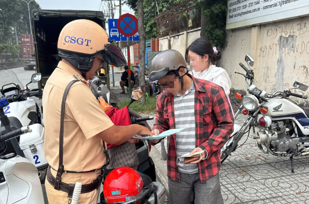 Đội Cảnh sát giao thông - Trật sự Công an TP Thủ Đức xử phạt một trường hợp vi phạm giao thông.