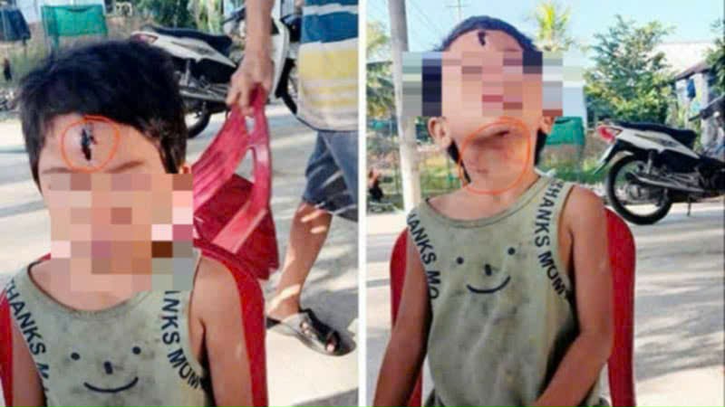 Hình ảnh cháu N được đăng trên Facebook với những vết thương nghi bị bạo hành. Ảnh: CTV