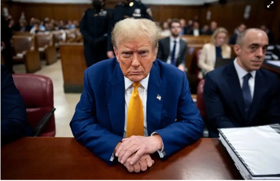 Ông Donald Trump xuất hiện tại phiên tòa hình sự ở New York vào tháng 5/2024. Ảnh: New York Times.