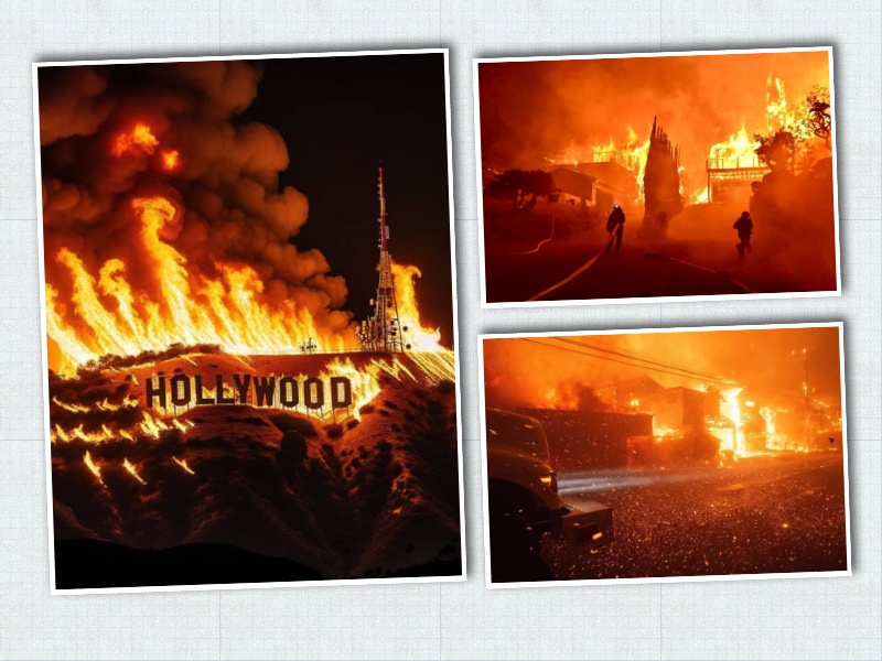 Trước và sau của Pacific Palisades, Los Angeles, California (Mỹ) bị lửa thiêu rụi hơn 24 giờ do cháy rừng (bắt đầu cháy ngày 7/1), Hollywood gần như chìm trong biển lửa. Tính đến thời điểm hiện tại, hàng chục ngàn người đã phải sơ tán, mất 5 mạng người. Mất hàng thập niên để xây dựng và chỉ ít giờ để bị xóa bỏ.