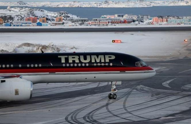 Máy bay chở ông Donald Trump Jr., con trai Tổng thống đắc cử Mỹ Donald Trump, tới thăm Nuuk, thủ phủ đảo Greenland thuộc Đan Mạch, ngày 7/1/2025. Ảnh: REUTERS