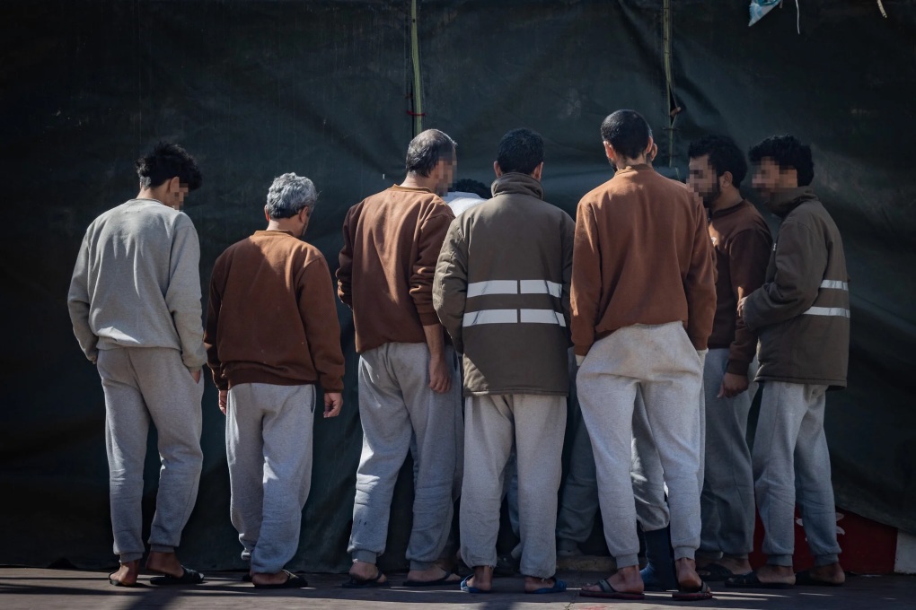 Một nhóm tù nhân Palestine tại nhà tù ở miền nam Israel hồi tháng 2/2024. Ảnh: Flash90