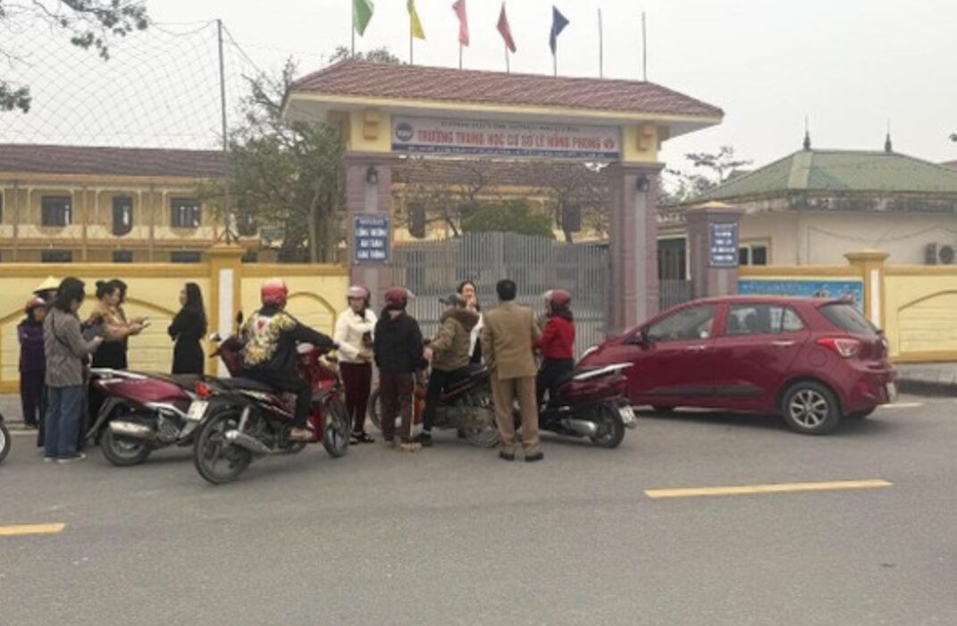 Sáng 19/1, trường THCS Lê Hồng Phong tổ chức họp phụ huynh cuối kỳ I nhưng buộc phải hủy. (Ảnh: TNNA).