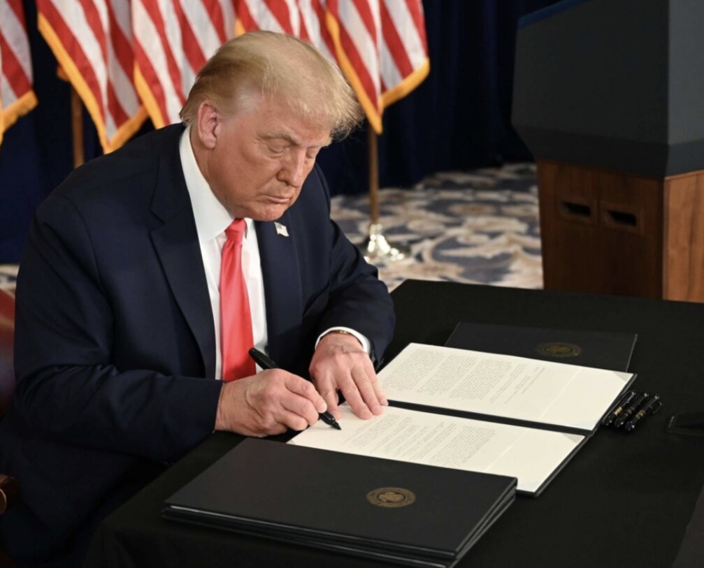 Tổng thống Donald Trump ký sắc lệnh hành pháp về gia hạn cứu trợ kinh tế do dịch Covid-19, ngày 8/8/2020. Ảnh: Getty