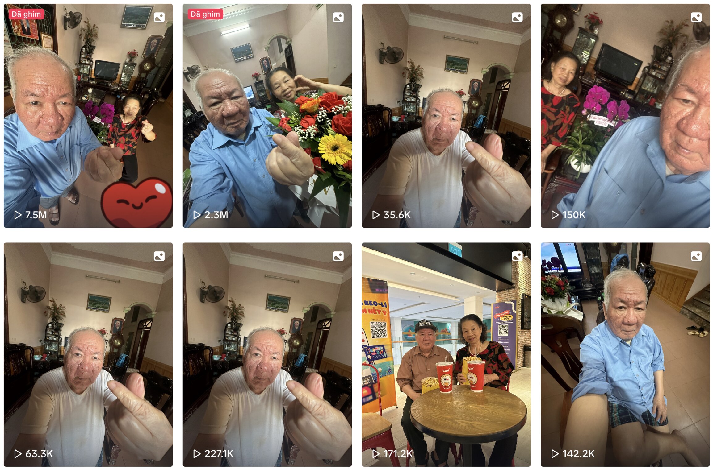 Hiện tài khoản của cụ ông chỉ có 24 clip ngắn nhưng đều nhận hàng chục, hàng trăm nghìn lượt xem. Thậm chí, clip ngắn mới nhất của cụ còn nhận tới gần 8 triệu lượt xem. Tài khoản này nhận đang được 19,5 nghìn follow, 1,4 triệu lượt thích và mọi người trêu đùa là "Nhà sáng tạo nội dung của năm".
