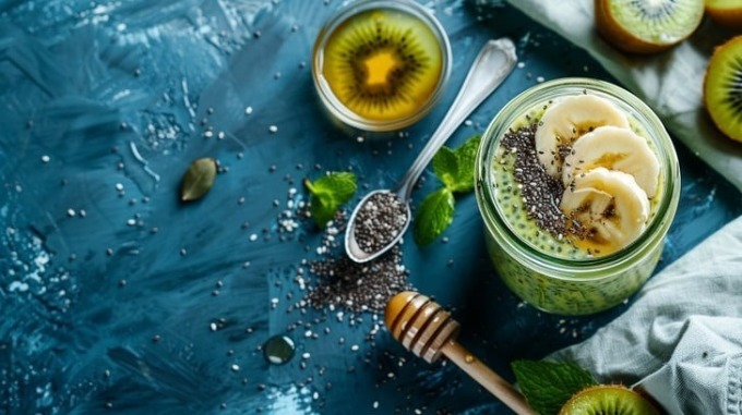 Thay bữa tối bằng một ly sinh tố kết hợp chuối và xoài, kiwi hay bơ cùng hạt chia giúp cải thiện tiêu hóa, tăng tốc độ giảm cân.