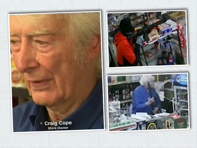 Old  Wink Video ông 80 tuổi chủ cửa hàng Cali bắn cướp chạy như chết cha chết mẹ -80 year store owner shot robbers and these run like a zombie