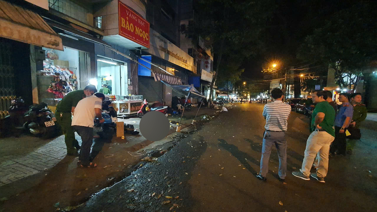 Cơ quan chức năng bảo vệ hiện trường vụ việc, người đàn ông cầm dao xông vào tiệm vàng, tự cứa cổ rồi nhảy từ lầu 3 xuống.